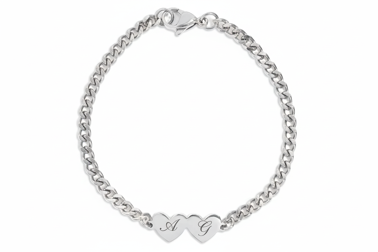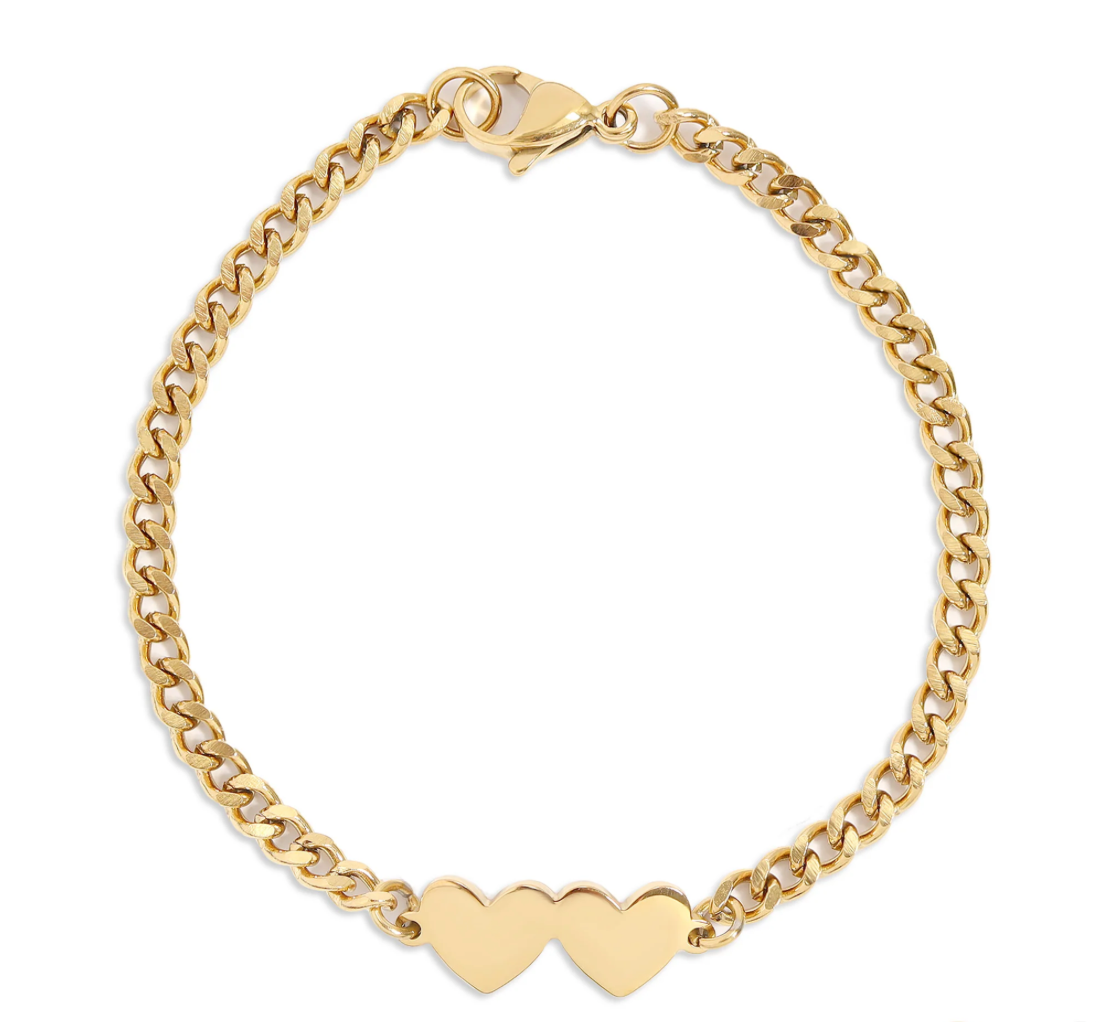 Two Heart Curb Chain Bracelet With Initials